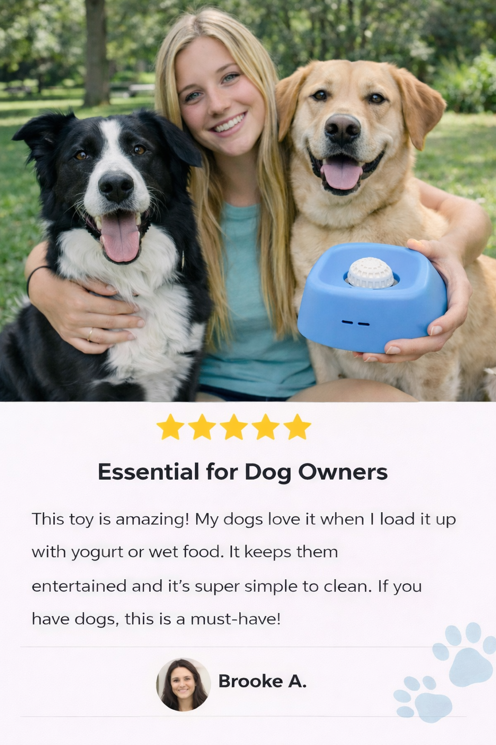 We use it daily with yogurt or peanut butter. My dog stays focused the whole time and is way more relaxed after. Cleans fast too.